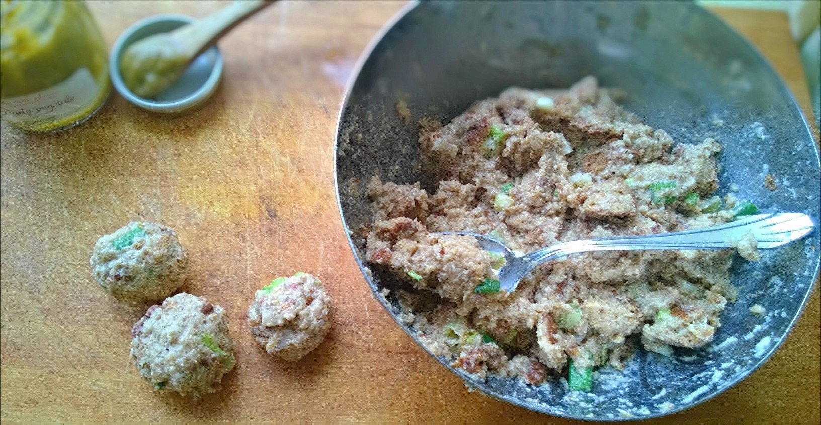 • Formate delle palline grosse come un cucchiaio da minestra. (vedi foto)